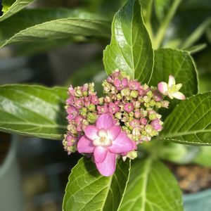 山紫陽花の藍姫が終わりかけ、ハイドランジアがモリモリ咲いてます。常山紫陽花の碧の瞳はこれからです。この時分がかわいい☺️