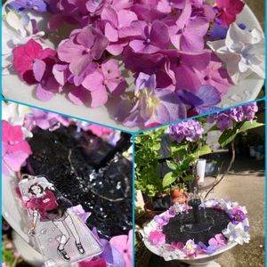 連日暑いですね~~🎐 🌸💠紫陽花💜花手水 ソーラーの⛲噴水💧 🩱水着のかえでちゃん 一緒に水浴びしたいです😄 4、5枚目、お出かけのかえでちゃん❣️