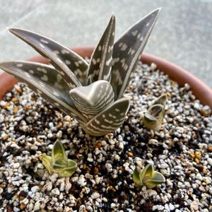Gastroaloe hybrid cv. Green Ice Aloe variegataと Gasteria cv. Little Wartyの交配種。 アロエとガステリアって仲良いんですね〜😗⚡️ 冬にぴったりな名前です🌿❄️ もりもり子吹いとるので増えそうな予感( ¯•ω•¯ )✨ 🏷おうち宇宙🌏🚀 🏷ぼくモルアロエらいふ🥗⚡️