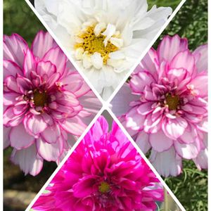娘のお庭の八重咲きコスモス 去年の零れ種がアッチコッチに飛んで生えてきたものを、寄せ集めて植え直し、見事にそれぞれ1m超えの大株に🤗 まもなく臨月を迎える娘は、お腹も重いし、3歳の上の子もいるので庭の手入れもできないので、私は時々🚗を40分走らせ『草取り婆さん』に変身します🤣