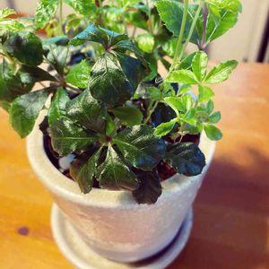 おはようございます☀ 少し雲の多い秋空の朝です😊 お店の片隅で、特価で売られてて元気がなかったけど…先日、鉢を換えたら 次々に新芽も出て元気になって来てます💕
