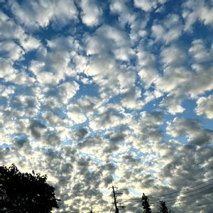 朝散歩🚶♀️📱 今朝の空 もぉ〜秋😱⁉️ 鱗雲(うろこぐも) 巻積雲(けんせきうん) 鱗雲は、秋に代表される雲で、魚の鱗のように見える美しい模様が特徴です。上空の高い位置に現れるため、手で隠れるくらいの小ささに見えます。低気圧や前線が近づく際に現れることが多く、天気が悪くなる前兆とされることもあります。 AI👨🏫。 天候が変わるのか🤔 遠出🚙💨💨は辛いな😓 でも 今日も頑張る💪 行って来ます👋 良い陽になりますように (❁ᴗ͈ˬᴗ͈)⁾⁾💕