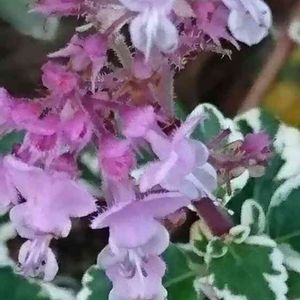 お疲れ様です(=^・^=) 今日は玄関内より⋅⋅⋅ もんもんチャンの 🏷「令和小さい秋」参加します♡ ༄༅🌀まだ避難中のお花です💦 昨年晩秋◌ ͙❁˚満開時にお迎えした シソ科のヘミジギア ピンクサファイア JFSで受賞した品種です💗 お花は春と秋に咲くそうですが 春に咲いていた記憶がなく⋅⋅⋅(^o^; この秋に期待‼ 🌿の白いところがピンクを帯びてきています⸜(*ˊᗜˋ*)⸝♡ᐝ もう少し気温が下がるともっとピンクになって可愛いのです💗💗 因みにお花も淡いピンクです🎀💕 皆様のところは🌀台風被害は大丈夫だったでしょうか? 我が家は何事もなく気がついたら朝を迎えておりました まだまだブルーシートの街並み⋅⋅⋅胸の痛む思いです 一日も早い復旧をお祈り申し上げます