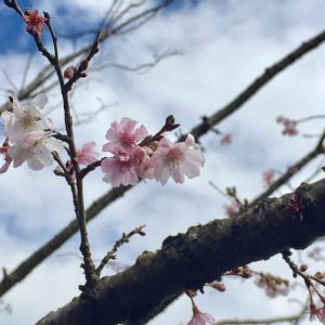 十月桜🌸 春と冬 2回咲く桜です🌸 この時期に桜🌸 心ウキウキします💓 新宿御苑にて 曇り空 心に太陽を☀️ 素敵な週末を お過ごし下さい🍀