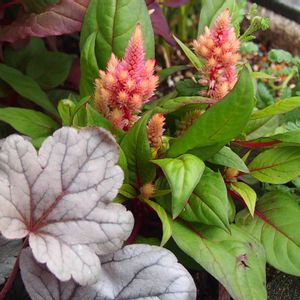 🍀セロシア スマートルックロマンティカ🍀 🍀ヒューケラ シルバーガムドロップ🍀 サーモンピンクの可愛いセロシア💕 シルバーリーフのヒューケラ💚 寄せ植え花壇の素敵な神戸旧居留地です😊