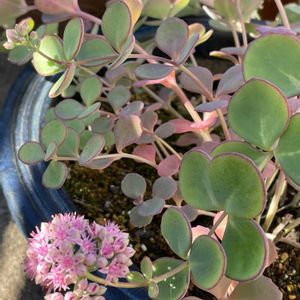 今日のお花 ミセバヤ 別名 玉緒(たまのお) 旅行先の小諸駅前の可愛いお花屋さんの前で初めて見て、欲しいと思い続けて1年後やっと手に入れて、数年の年月を経て、その数を増やして、ひと株はカポックとの寄せ植えに✿ ・*♪ 小諸のお花屋さんでは、お花の名前を越中ミセバヤと教えてらったことを思い出した☺️ ふっくら可愛い多肉の葉は花を終えると赤く色づいて、長い時期楽しませてくれるかわいいお花🌸 好きだなぁ♡