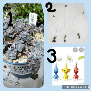 1.先日、可愛い(〃ω〃)白雪ミセバヤをお迎えしました。湯布院育ちらしいです。😃 2.ミセバヤに混じって、こんなものが生えてました。😲 3.これに似てる··· ピクミン!?