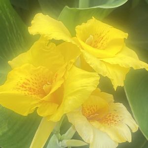 💕強い陽ざしに負けずトロピカルな花💕 (カンナ ダンドク ハナカンナ) 下の写真は (タンドク レモンカノーバ)と呼ばれる 原種に近いカンナだそうです 黄色い花 花言葉🌼 長続き 永遠 堅実な未来 カンナは コロンブスが発見したんだって‼️