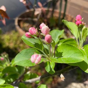 我が家の鉢植えの姫林檎🪴の開花が間も無く😊楽しみ🎶🎶