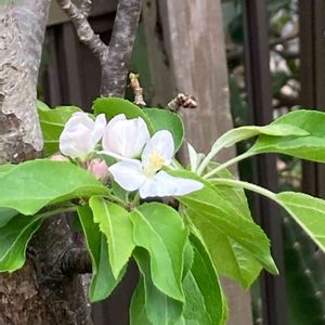 おはようございます😄 2020年12月に処分品でお迎えした 姫りんご** 昨年は小さなりんご🍎が 沢山収穫できました🙌 ピンクの蕾がとってもキュート💞 開くと白になります♡ 今年も楽しみです🍎