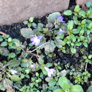 植え込み(今は土ばかり)に小さなムラサキサギゴケがそこ此処に出ていました。3枚目/右上の細い葉は爪草です。