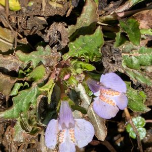 新潟・雪国植物園 ムラサキサギゴケの狂い咲き⁉️😳 なぜこの時期に❓ 近くにトキワハゼも咲いていますが二回りほど大きい‼️ ムラサキサギゴケではありませんか⁉️