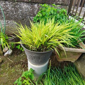 こんばんは😃🌃 昨日、伊丹で一番大きな園芸店に行ってgetしました戦利品です。 3つしか買わなかったけど、見事に細長い葉っぱが揃いましたね 😂💦 これで🏷️8日は葉っぱの発表会 参加させて頂きます 🙇 左、斑入りの風知草 GSで皆さんのpicを見せて頂いて「ああ、いいなあ~(´ー`).。*・゚゚」と思っておりましたが、この度出会えましたので 😆💕 中、シマススキですって 😯 ヒョロヒョロで、大丈夫だろうか?🤔 右、五葉松が欲しかったので来て頂きましたが、「為五葉松」ですって!? 何?「為」って 🤔 「為五郎」? 二枚目、為五郎さんのアップ お花咲いています 🥳🎶