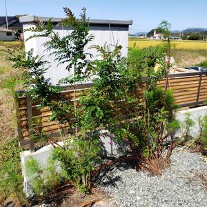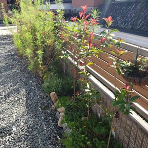 レッドロビンが1年でだいぶ幹がしっかりとなっています。 生垣になるかなー