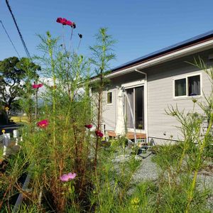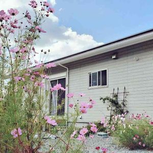フェンスより大きくなり、期間限定の目隠しコスモスです✨