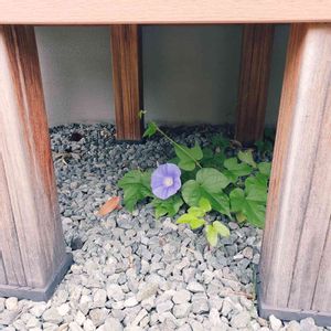 ウッドデッキの下にひっそりと。 こぼれ種こんなところまで落ちるのか……