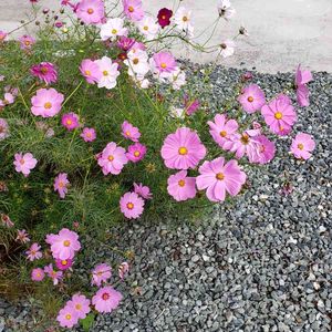 こぼれダネから🌼 砂利を敷き詰めただけの、 簡易駐車場。 🚙、🚶の邪魔にならないように咲いてます💞 毎年咲いて、元気な花です🎶