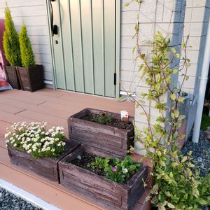 5月に植え替えしたシマトネリコ、かなり成長しました! 右側の方は、場所の移動を検討中です。 2つとも大きくなったらとんでもないことになりそうなので(笑)
