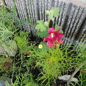ホリホックの赤も初開花! 大きくなれーーー❗