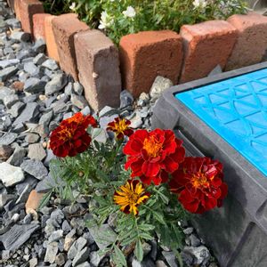 砂利からマリーゴールド^ - ^ あちこちで咲いてます