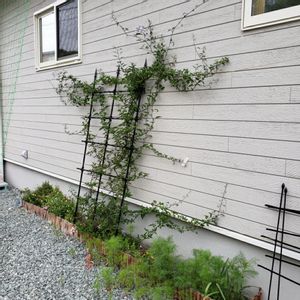 ツルハナナスのつるがうまく可愛く誘引出来ているようで嬉しいです(^-^)
