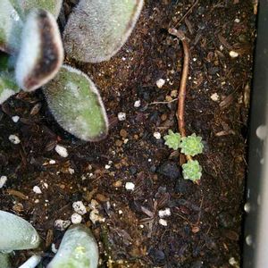 桃美人の花芽(๑ơ ₃ ơ)♥ ポキンと取れたので、横にグサッと挿して置いたら、蕾らしいのが出てきた(๑•̀ㅂ•́)و✧ 他にもミセバヤと樹氷も(´▽`*)