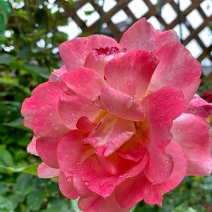 おはようございます😃 ジェミニ 雨にも負けず😁🌹 リオサンバ もたれかかりすぎ 花びらは雨に強い❣️ 茎は細くて耐えきれず 折れてしまいます😭💦
