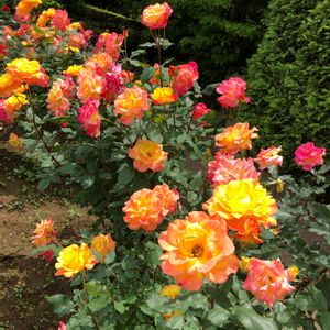 ハイブリッドティーローズ リオサンバ 四季咲バラ 黄色→オレンジ→朱色に色が変化する🌹 複色のバラの花言葉∶「一期一会」 バラ科バラ属🌿