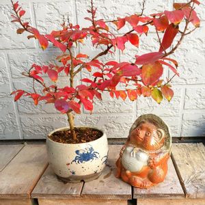 こんにちは👋😃 今日は🏷️タヌキ祭りと聞いて、お狸様出動致しました!( ̄∇ ̄*)ゞ ①玄関前に置いていた百日紅の葉がいつの間にか紅葉してましたよ 😊❣️ 🏷️8日は葉っぱの発表会 ②ヒメツルソバに囲まれて幸せそうなお狸様でした 💕💕 🦝💕💕