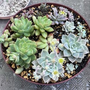 黄麗、薄氷、秋麗、ブロンズ姫の無法地帯となっていた鉢をやっときれいにしました😊久しぶりに黄麗を上から見ました😅 2枚目はbeforeです。特に黄麗が気の毒な状況でした💦