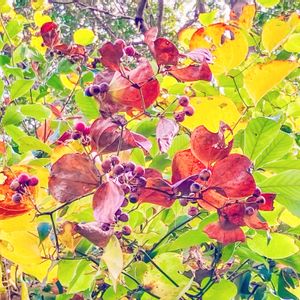色づいた実🟡、葉っぱ🍁🍂🌿 🏷️石の日🪨イロイロ˚✧₊⁎ 《スライドpic》 ①キカラスウリの実🟡 綺麗な黄色に色づいてたョ😍 🪨イロイロ☆*:.。. ②石壁に取り付けられたナチュラルリース(東山植物園) ③イロハモミジがこんな所で紅葉してる-😆🍁 ④美しいナツヅタの紅葉🧡💛🤎 下部はクリスマスカラー🎄❤️💚 ⑤石畳から上がる噴水⛲️と☀️の 素敵マジック✨🌈