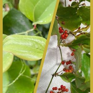 今日のお花 ⁑ サルトリイバラ🔴 サルトリイバラ play back… この葉を食草にするルリタテハの幼虫🐛 猿捕茨 ⚫︎⚪︎⚪︎⚪︎⚪︎