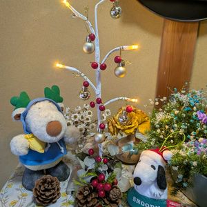 👠👟👞🥾👢シューズボックスの上は少しクリスマスモードに飾りました🎄🧑🎄🎁 ¥100shopで見つけた乾電池(単3、2本)で灯るBranch treeにゴールドテイストのアンティークボール(20mm)にサルトリイバラの🔴を刺してデコレート🤭