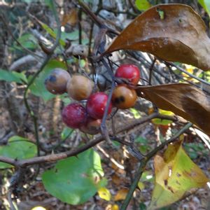 1⃣ビナンカズラ (サネカズラ) 畑で見つけました。 場所を覚えておいて花も見てみたい。 2️⃣ヤブラン: 3️⃣クサギ: あちこちで咲いて毎年種をそこら中に撒き散らします。 4️⃣サルトリイバラ 花が綺麗なのでそのままにしていたら伸び放題伸びて柵や笹に絡んで大変なことになってます。 5️⃣サルトリイバラ、ヘクソカズラ: 赤い実と黄土色の実がツヤツヤ綺麗。 花も綺麗だからまた来年もそのまま伸ばし放題なんだろうな…