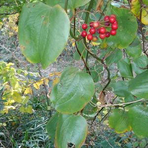 おはようございます😃 🏷️今日のお花 🔴サルトリイバラ🔴 サルトリイバラ科の落葉つる性の多年生植物(雌雄異株) ①サルトリイバラ 別名、サンキライ(山帰来) ②サルトリイバラ 左上,春に咲く花で,青い実がなり赤くなります😊 ③ガマズミ サルトリイバラの脇に,まだ ありました☺️ ④モミジ🍁 川にせり出し,紅葉してました😉 ⑤ツツジの葉(神峰公園にて) 遠くから,赤い花が咲いてるように見えました☺️ツツジも紅葉するんですね😉 🏷️真っ赤な火曜日 参加します。