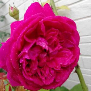ウィリアム・シェイクスピア2000 イングリッシュローズで、私の薔薇育てかなり初期にお迎えした子🌹こちらも、地植えでひょろひょろしてたのを鉢に移して、オルトラン混ぜ込んだら一気に株が充実してきて、過去最多の花数✨ 蕾はちっちゃいけど咲くと大輪で花弁もぎっしり(*゚▽゚*)✨ クリムゾンレッドが雨の中眩しいわ✨ 備忘録 開花No.21