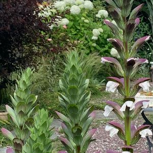アカンサスが咲いていました。 別名ハアザミで、草丈が約1.5m、紫色の萼と白い花弁のコントラストがダイナミックに感じられます🌟🎶 今の季節、雄大な花穂を伸ばした姿はよく目立ちます💕😃