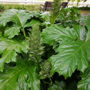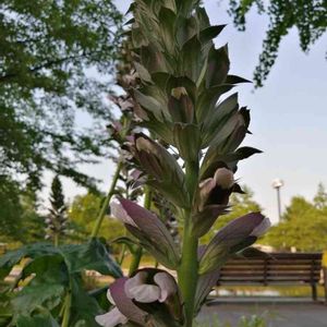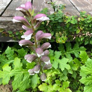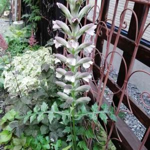 🌿アカンサス・モリス🌿 色は目立たない紫色ですが、株は大苗になり存在感いっぱい💖 今花壇のメインになってます🌿 葉も特徴あり綺麗です。