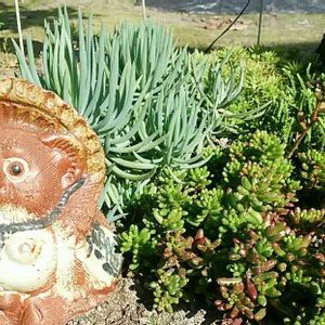 タヌキ祭り参加しま~す❢❣ 信楽焼のタヌキさんがたくさん参加されてますなぁ👍 しかしながら、我が家にはこの信楽焼タヌキさんしか居ないの~❢❣ 地植え多肉コーナーで📸💕