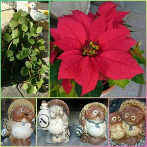 11/8 (木)🌞 🎀🔔💕ポインセチア🌼 🍀ペペロミア ホープ🌿 🍂庭先の狸さん🍂