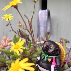 わぁー!もっと早く参加するはずだったのにー! タヌキ祭り! この為に、チクチク たぬきを 昨夜しあげたの😅 なのに、娘から緊急事態の電話! 「自転車がパンクした、大学まで 送って! 時間がない!」 なぁにぃ〜!今朝は、味噌汁温めてあげようとしたら 自分でできるから かまわないで!っていっただろうに😤 わたしだって、11時から歯医者なのに。 こんな時、結構 私は 冷静なとこあるんだ😁 広告の裏に、[パンクしてます。すぐに取りにきます。このままにしていてください!] 自転車に、貼る道具を忘れたから、カバンに入れてたカットバンで😊 何人が、笑って行ったんだろう。 娘を大学に送って、自転車を回収、修理をたのんで、私は歯医者へ! 歯医者が終わり、投稿やっとできた😊 これから自転車取りに行って、また娘迎えに...😓 たぬきちゃん!もっと 時間かけてポーズとらせてあげたかったなぁ。 あっ!多肉ちゃん、 一花咲かせました😂