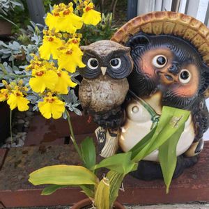 タヌキ祭り🎶😆🎶✨ このタヌキさん達 皆んな 同じ方向見てるけど 何を見てるのかなぁ〜🤣美味しそうなものでも?😋 近所で オキナワスズメウリ 植えてあるの初めて見ました😳😍 ドライの物はお花屋さん見た事あるけど ちょこっとでお高くてビックリしましたよ😫