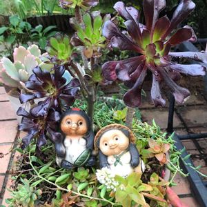 みらいさん主催の🏷ネックレスの日 りなははさん主催の🏷『タヌキ祭り』 勝手にコラボ投稿🙇♀️ 結局、植え替えてない寄植え😅 雨ざらし放置なので、毎冬、棒になる黒法師さんも、今は最高に綺麗(*´艸`*) 胡蝶の舞錦や、三日月ネックレス、火祭りなど、この鉢から増えて独立(笑)してるから、我家の多肉の元祖🤣