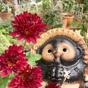 おはようございます(*´∀`)♪💕 分福茶釜の茂林寺へ行ったときに お迎えしてきたタヌキちゃんです 菊のお花が咲き始めたので一緒に🤳✨✨ 🏷『タヌキ祭り』🏷タヌキ祭り 参加させてくださいね〜〜🤗💓