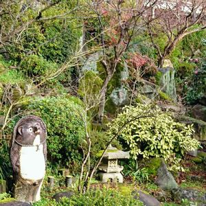 元祖オタヌキサマ、出てこられました~😅 今年の夏、行った湯坂温泉のお庭より🎵