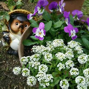 家にもいます!信楽のタヌキさん😃 タヌキ祭に参加させて下さい🎶 アリッサムがもりもりになってます💓