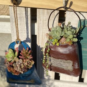 こんにちは😃 初挑戦のアルミ缶をリメイクして作ったバッグ型の鉢😊 今日チマチマ寄せ植えしてみました。 ん〜 なかなか可愛いではないか❣️