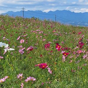 🏷今日のお花 コスモス 去年9月高崎展望鼻高花の丘にて ①はキバナコスモスかな? ②コスモスの向こうに西上州の山々 この鼻高展望花の丘は 4月〜菜の花、ネモフィラ、向日葵と お花が移ろっていきます。 去年の今頃コスモスを見に行った時、 ちょうど蒔き時のネモフィラの種が もらえました🌱 今年まいてみようかしら😆💕