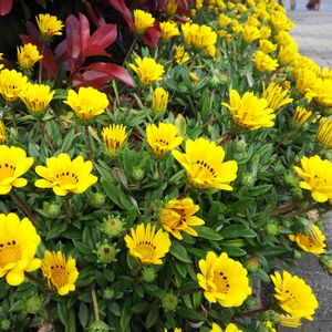 ガザニア💛 昨日お散歩🐕️🐾で… レッドロビンの赤い葉っぱ♥️と黄色のガザニア💛が綺麗でした。