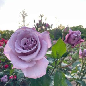 🌹朝の薔薇🌹 💜ブルーシャトー💜 薔薇がみれるのもあと少し…💠 香りの強い藤色の和バラ。 日本を代表する世界的トップブリーダーの寺西菊雄氏作